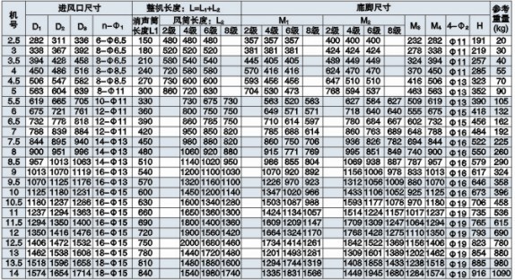 五、高效低噪混流式高溫排煙風機尺寸表