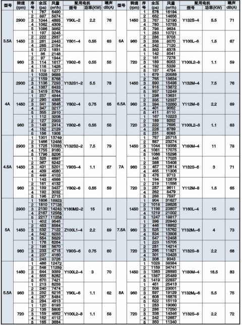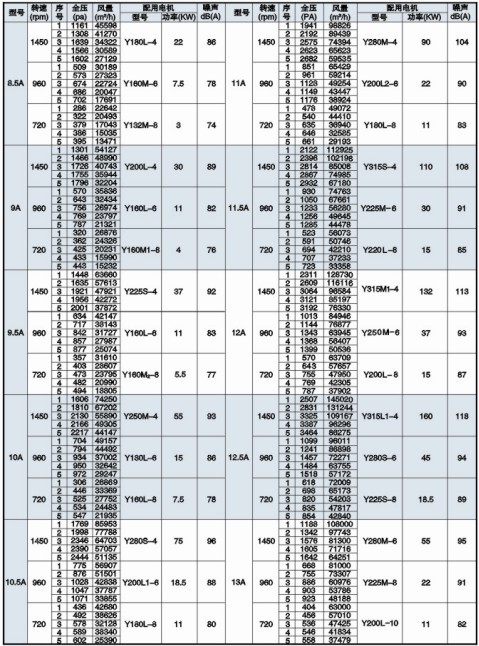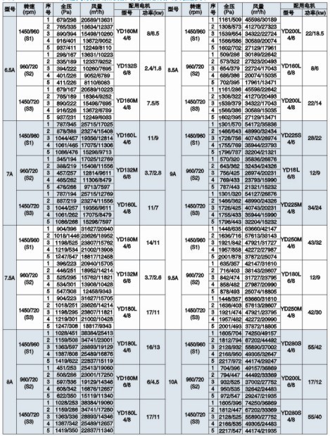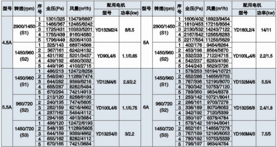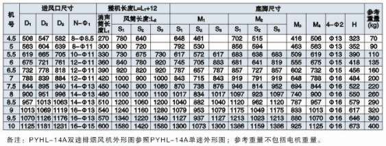 五、PYHL-14A雙速高效低噪混流式高溫排煙風機性能表